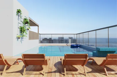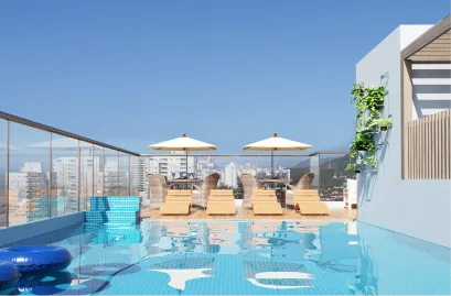 Vista infinita para o mar, lazer exclusivo no rooftop e design contemporâneo — uma vida elevada no coração da praia.
