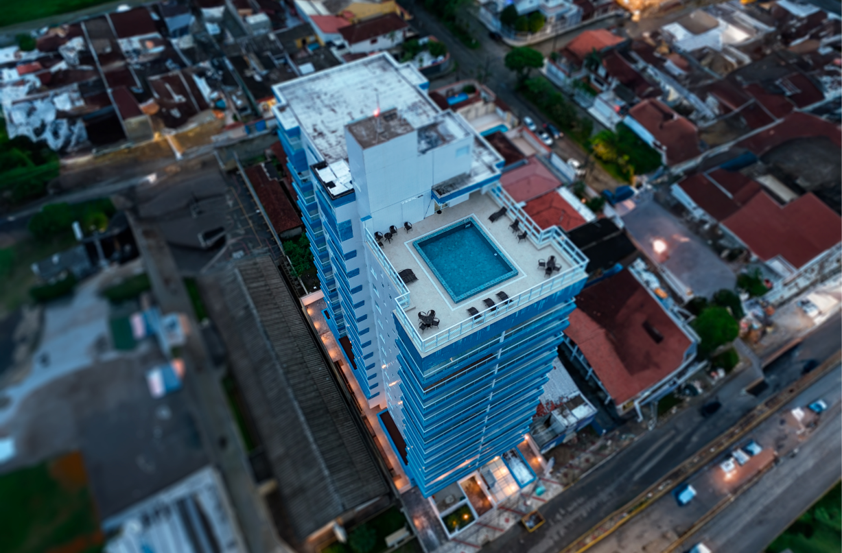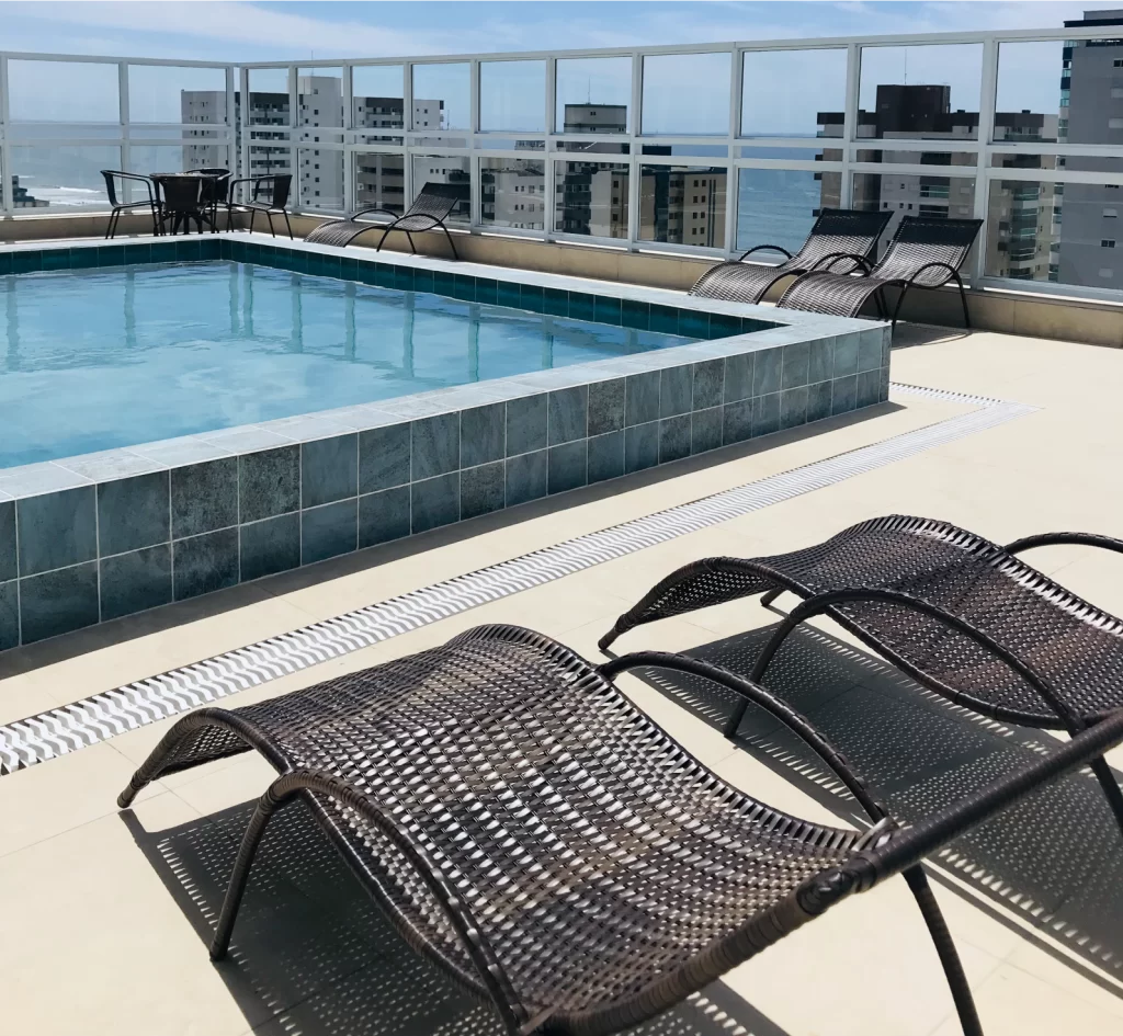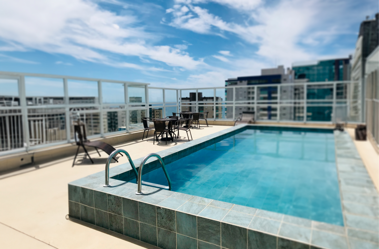 Uma piscina exclusiva no topo do prédio com vista ao mar proporcionando a melhor experiência.